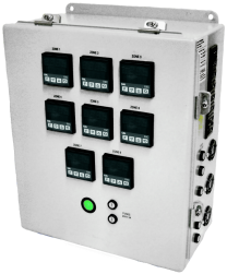 产品规格: • 操作电压:120, 208, 240, 277 或 480伏 单相 (亦可按需 提供三相电压) • 每区单独输出保险丝 • 操作温度范围:32-1400℉ (0-760℃) • 温控器zui高暴露温度:14℉至122℉ (-10℃至50℃) • 用户可设置报警类型 • 报警状态直观可见 • 可设定安全锁等级 • 精确度:±0.5%读数 ±1lsd(zui小有效数位) • J型热电偶,迷你输入插座* (亦可提供其他温度探头) • 双显示:可以以℃或℉同时显示每区的设定温度和实际温度 | • PID参数自整定功能 • 传感器断线保护 • 手动 或 自动控制 • 斜坡/恒值功能 • 输出插座: - 120伏: NEMA ML-2R - 15安培 - 240和208伏: NEMA L6-15R - 15安培 - 480伏 NEMA L8-20R - 20安培 - 亦可选择直接接线 • 可选声音报警、RS-485端口及远程报警(干接点SPDT,带三眼 插座及连接器) * 热电偶单独销售 |